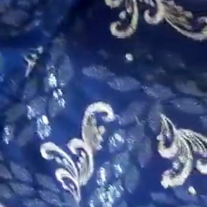 Sequined French Lace/ Quality Net Lace Fabric/ Navy & Silver/ 5 Yards #009