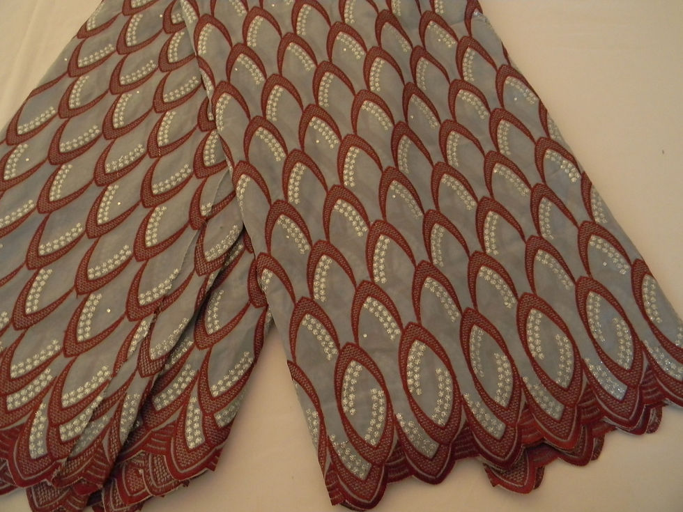 French Lace/African Quality Poly Lace Fabric For Bridal Outfits/Wine&Silv/5Yards